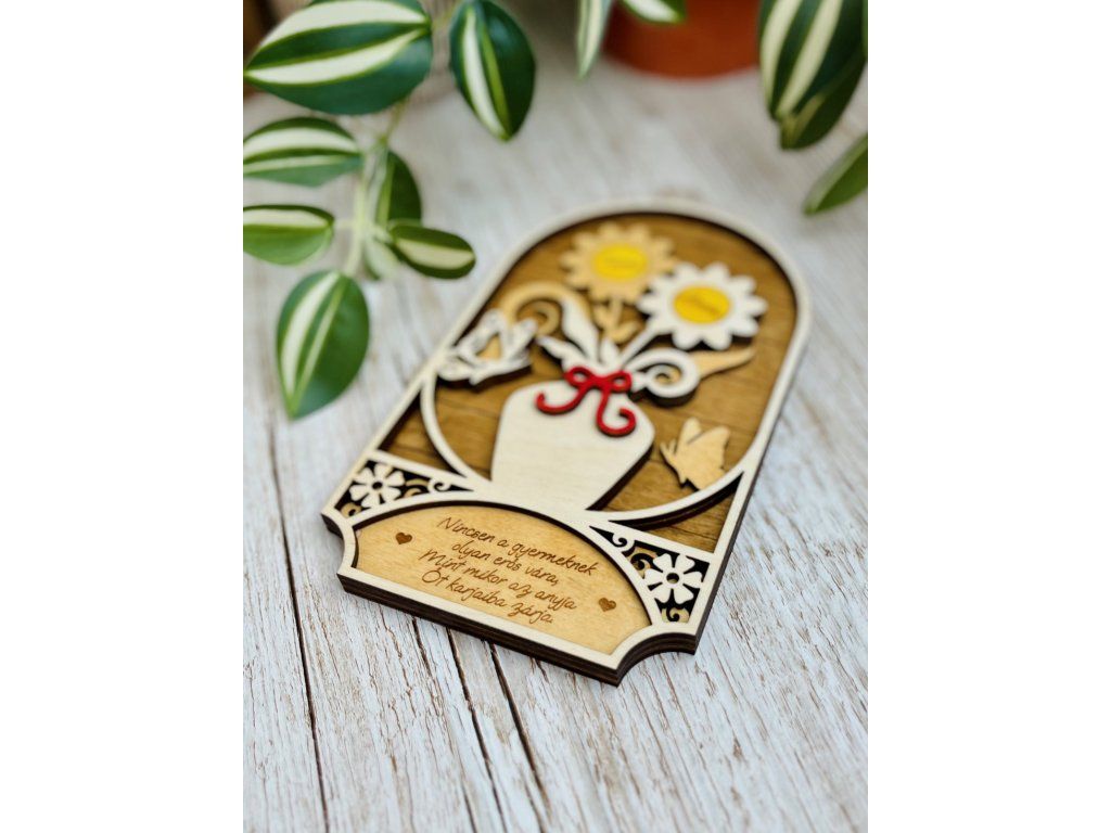 Ez a különleges, rétegelt lemezből készült falidísz egy igazán személyes és szívhez szóló ajándék.